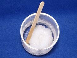 ほかにも、干吟10gに対し水50ccを加えて撹拌、電子レンジで10秒間加熱して撹拌、 この加熱と撹拌を状態を見ながら繰返す方法があります。より良好な糊が得られる ような気もしますが、私自身が状態を見極められない事、30秒×2でも十分 な品質が得られる事からこちらの方法は使っていません。 |